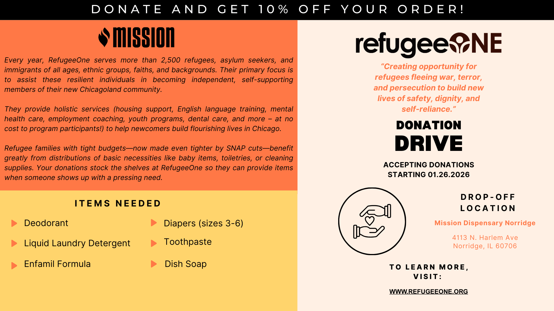 We’re excited to welcome you to our Norridge dispensary on Harlem Ave. With a vast selection of cannabis products, knowledgeable budtenders, and unbeatable convenience, Mission is your go-to destination for premium weed near Chicago.